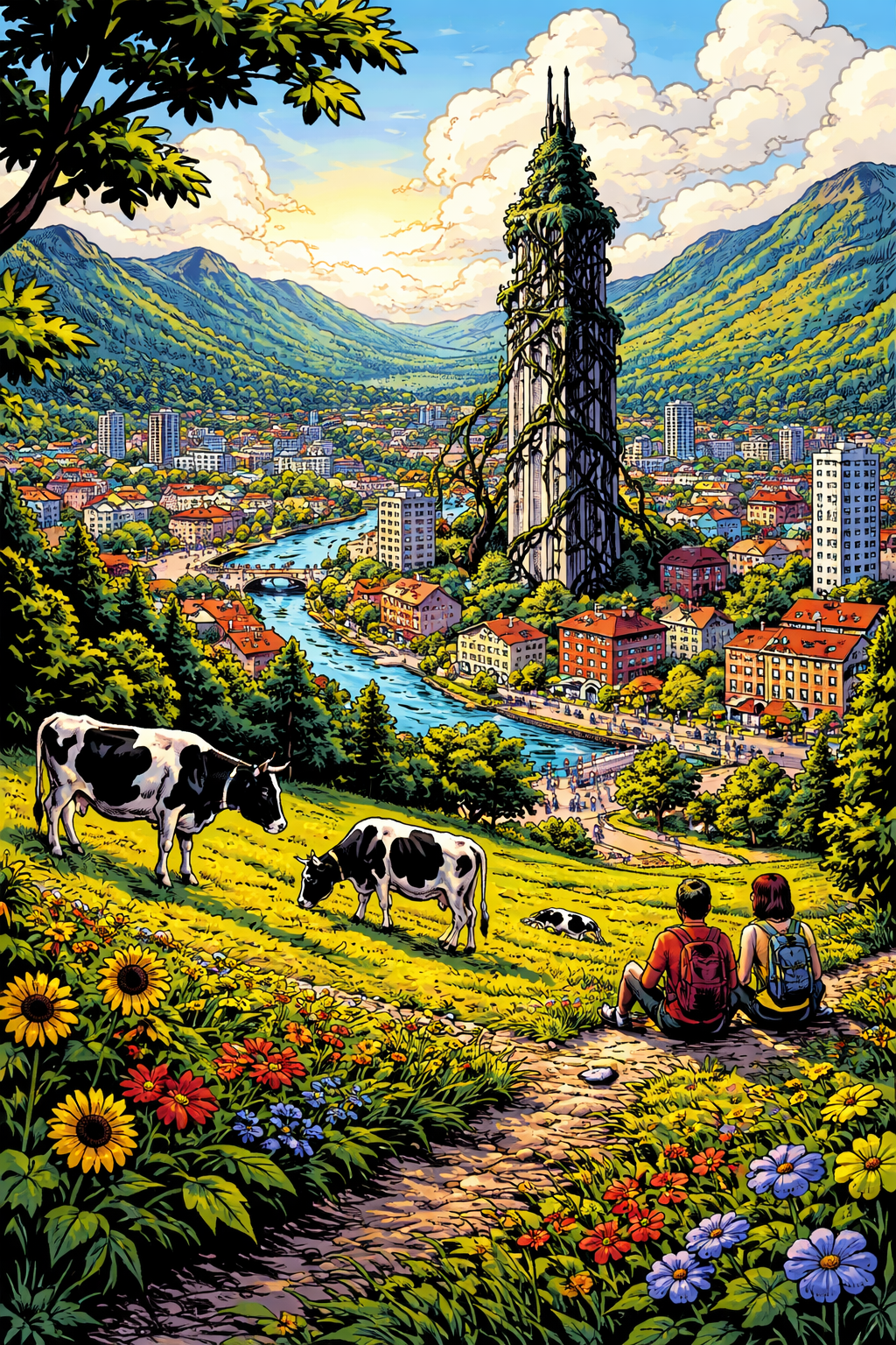 Nearly a year after the last sacrifice, farmers began to worry, as their crops were no longer growing as lush and bountiful as they had been. As word got around, many people were frightened. The decision to start the sacrifices again split the city in two yet again. Many of the smartest people in the city came together to try and solve the issue, they devised a ten year plan in which most of the city was able to come to an agreement on. They would start by planting around a thousand trees near the highest concentration point of the veins. They would then sacrifice cattle every so often in order to keep the entity satisfied. Food was rationed and after many years the trees grew tall, strong, and had huge green leaves on branches the grew the ripest fruits.